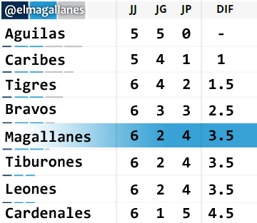 DESPUÉS DE LA JORNADA< POSICIONES EN LA PELOTA VENEZOLANA>